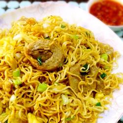 11.Finally add the chopped green onions and mix well.The delicious home-style fried noodles are completed!