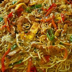 The noodles should be the thinnest kind Machine-pressed noodles can be found anywhere that sells machine-pressed noodles.