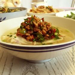 How to make shredded pork noodles with green pepper