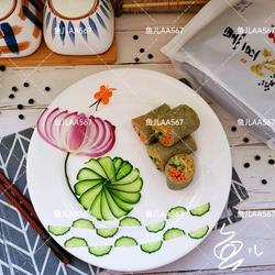 14. Spread an appropriate amount of sauce on the black bean pancakes and put various shredded vegetables