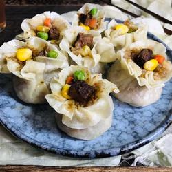 6.Take the dumpling skin and roll it out a little thinner, then add an appropriate amount of mixed glutinous rice and beef filling p>
