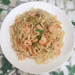 1. Ingredients: prawns, cabbage, carrots (not all of them), green onions , celery, noodles.