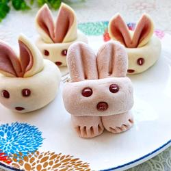 5.The shape of the rabbit can be arbitrary.Here we only introduce the pink-eared bunny steamed buns.