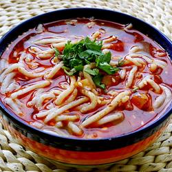 8.Add appropriate amount of noodle soup and stir evenly.onto the scooped out noodles.