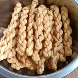 5. Roll the strips into long and thin pieces! Then pinch one side with one hand and rub it in reverse with the other hand! Make it into twists based on personal preference