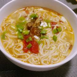 The noodles are cooked in advance to prevent the soup from being sticky.If you like that, you can put it directly into the tomato soup and cook it.The beef soup is beef that has been stewed in advance.If you don’t have it at the moment, you don’t need to add it.You can change it to light soy sauce or clear soup.Add some greens!