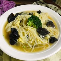 9.A delicious black fungus noodle soup is ready