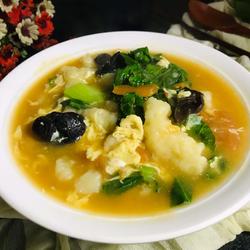 1.Slowly add water to the flour.Add water and stir until the dough is thin and you can use chopsticks to pick up small lumps
