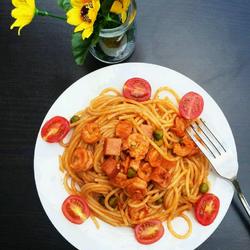 Ham sausage ( appropriate amount ) | Tomato ( one ) |