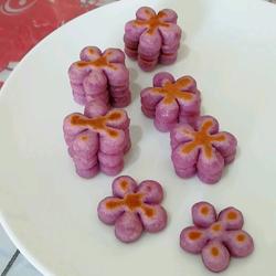 Purple sweet potato puree is a bit dry, so you need to add water appropriately to make the dough soft and hard.