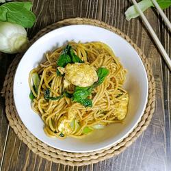 Alkaline noodles You can pour a little water into the pot to make the fried noodles softer.