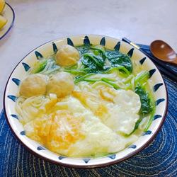 3.Add appropriate amount of boiling water, add noodles and meatballs and cook until the noodles are cooked until there is no white hard core