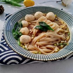 7. Pour half a bowl of noodle soup (or clear soup) into the seasoning bowl, and then scoop it in Boiled noodles, topped with cooked meatballs and cabbage.