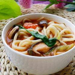 1. Prepare ingredients, mushrooms, Green peppers, tomatoes, noodles, green vegetables