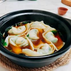 11.Put a little lard and a little light soy sauce in the bowl, add the noodle soup, and scoop in the wontons., eat! If you like it spicy, you can add a little chili oil, but I didn’t.