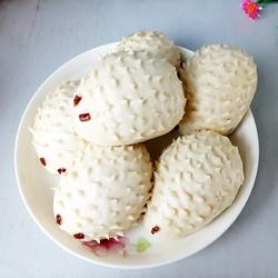 14.Pay attention to the water droplets on the lid of the pot, open it, and the white and fat hedgehog steamed buns will be ready