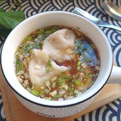 11.Put 2 spoons of vinegar and 1 spoon of light soy sauce, and add appropriate amount Dumpling soup