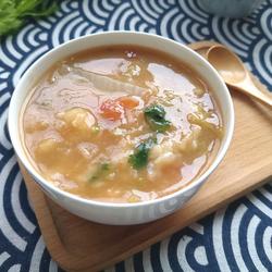 9. Boil the cabbage and boil the water, add the flour, stir evenly and cook