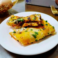 1. Brush the electric baking pan after heating Pour a little cooking oil into 2 tablespoons of batter and spread it evenly, then beat 1 egg on top and spread evenly.