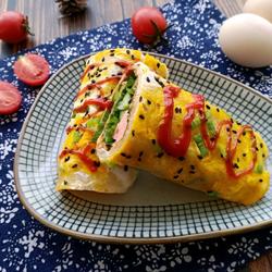 7.Turn over again, and remove the eggs Spread a spoonful of soybean paste evenly on one side.(Add appropriate amount according to personal taste)