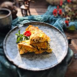 3.Heat oil in a pan, pour in the mixed batter, shake the pan to spread the batter all over the bottom of the pan