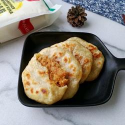 10. Flatten the small dough with your hands and add an appropriate amount of meat filling.