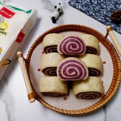 13.A delicious purple sweet potato two-color flower roll is ready.