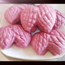 8. Add water to the pot, steam over high heat for 15 minutes.Simmer for 5 minutes, open the lid and take it out.Look at how beautiful the steamed purple sweet potato buns are.(I forgot to take the photo of steaming buns with water in the pot, so I finished it on this photo.)