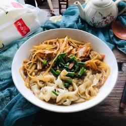 14. Place the fried shredded potatoes and pork on the noodles and sprinkle with chopped green onion.That's it