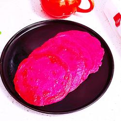 12.Put cooking oil into the pot, pour in the dragon fruit batter, and bake over low heat to set the shape