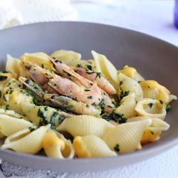 Shell noodles ( One serving ) | Sweet shrimp ( 10 pieces ) |
