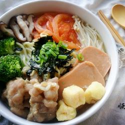 2.No special processing is required.Slice the tomatoes, cut the enoki mushrooms into small florets, and slice the lunch meat.It’s all done
