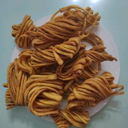 6.Put oil in the pot.When the oil is hot, use chopsticks to test for small bubbles on the edge.Remove the noodles.Turn it around on your hands a few times until the joints are sticky with the dough.