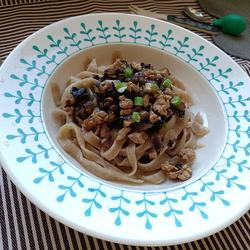 7. Put the fried mushrooms and fungus meat sauce on the noodles Top and garnish with chopped green onion