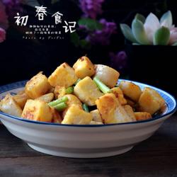 4.Pour a little oil into the pot, add diced steamed buns, stir-fry over low heat until the surface is slightly brown and serve! (The surface is a bit like a pot cake)