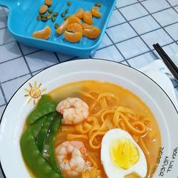 Carrot water flour ( ) | Edible oil, shrimp heads and meat, green onions and ginger, black pepper, soy sauce, salt, snow peas, boiled eggs ( ) |