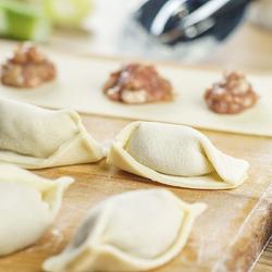 5.Use a wheel cutter to cut off the excess dough, and then proceed in sequence Cut the dumplings