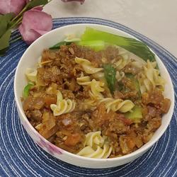 9.Cook until the soup is slightly dry, then boil water in a pot, add screw noodles and cook