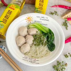 1. Shanghai greens, meatballs, vine peppers, and dry noodles are ready
