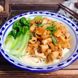 13. Boil water in another pot, add a little salt and oil, put Add handmade noodles, mix well and bring to boil