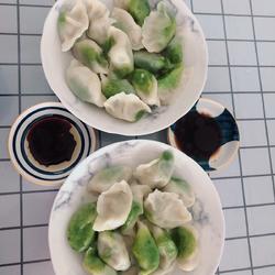 3.Put the green noodles as the base and the white ones on top.The dumplings will look like cabbage (I I made it wrong, so the result is not pretty)