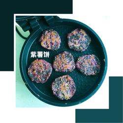 5.After stirring , take a spoonful at a time and roll it into a ball, wrap it with sesame seeds, put it into an electric baking pan or a non-stick pan and press it into a cake shape (preheat the bottom of the pan in advance and brush it with oil, turn off the heat and then start adding the purple potato cakes, all Place it and turn on the fire)