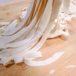 7. Roll it into a large round piece.When it is thin, cut it into wider pieces.When it is thicker, cut it into narrower pieces..