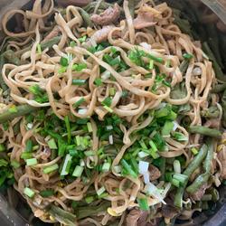 6.Add the prepared beans and bean sprouts in turn, stir-fry evenly, add appropriate amount of salt and chicken essence , Nande, soy sauce, light soy sauce and other condiments.Cook for a few minutes.