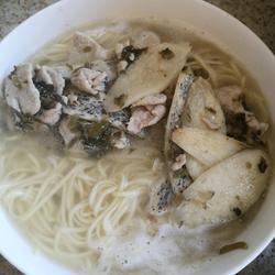8.Add the meat slices and pickled vegetables, add salt and appropriate amount of water, cover and cook for half a minute to serve