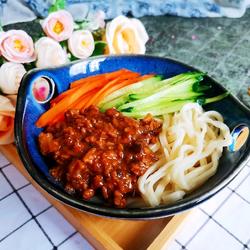 19.Add carrots and cucumber shreds, and scoop a few spoonfuls of the cooked mushroom meat sauce