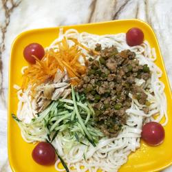 Fried Sauce noodles, the noodles are hand-rolled and taste good.Also, it only tastes better after being soaked in cold water, and it’s not too chewy
