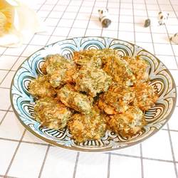 12.Put the prepared mugwort buns into the plate, and put the remaining mugwort dough into the oil pan