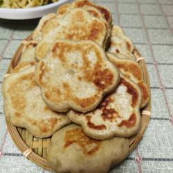 6. Roll the rested dough into a large piece, use a mold to press it into small flowers, put it in a pan and bake over low heat, turn it over and cook for 4 minutes.Pot