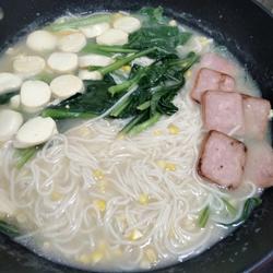 7.Corn After the soup boils, add the noodles and cook until the noodles are half cooked, then add an appropriate amount of water.Legend has it that the noodles will taste better if you do it this way.Then add an appropriate amount of salt and cover the pot